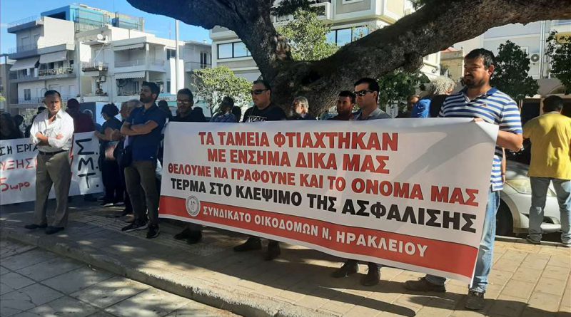 «Στο Ηράκλειο είχαμε μια επιτυχημένη διαμαρτυρία στο πλαίσιο της πανελλαδικής απεργίας. Ζητάμε να μπει επιτέλους ένα τέλος στην ανασφάλιστη εργασία. Δεν μπορεί οι οικοδόμοι να δουλεύουν με φουλ τις μηχανές και να μην ασφαλίζονται. Το ποσό των 247 εκατομμυρίων που έχει συγκεντρωθεί από το 1984 έως σήμερα στα υπερ αγνώστων ένσημα, πρέπει να αποδοθεί στους οικοδόμους, τους πραγματικά δικαιούχους» είπε ο κ. Γιάννης Γωνιανάκης, πρόεδρος Συνδικάτου Οικοδόμων Νομού Ηρακλείου.