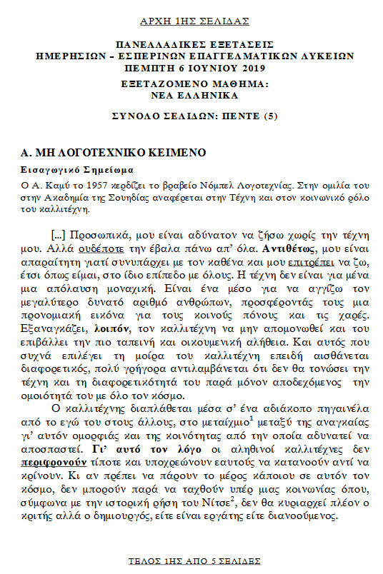Πανελλήνιες 2019: Απαντήσεις για τα θέματα στα Νέα Ελληνικά και εντυπώσεις