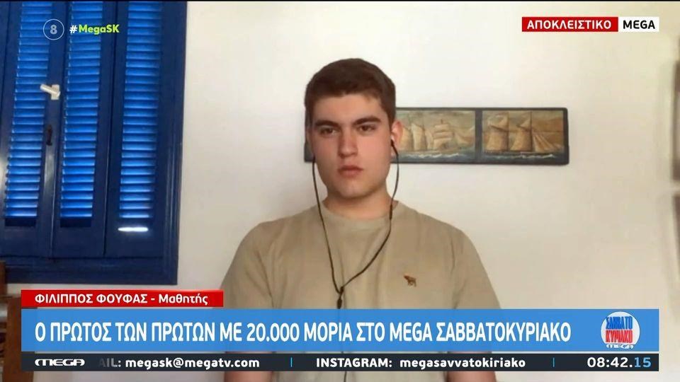 Ο Φίλιππος Φούφας κατάφερε να πετύχει το απόλυτο 20 αφού πήρε 100/100 και από τους οκτώ βαθμολογητές των γραπτών του κατά τις Πανελλήνιες 2023. Έτσι, ο ίδιος δήλωσε την Κυριακή (02/07) πως «παίζουν ρόλο τόσο το διάβασμα όσο και η τύχη».