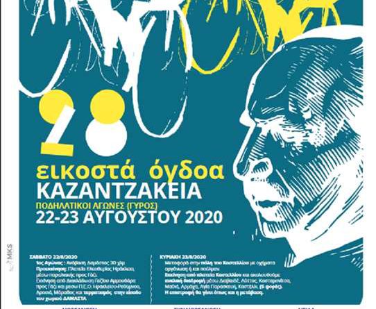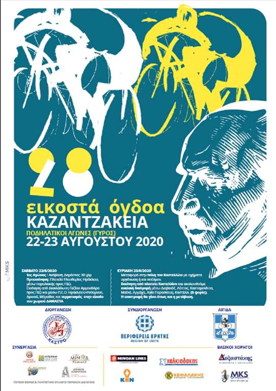 Ο Π.Ο.Η. ΚΑΣΤΡΟ με την συνδιοργάνωση της Περιφέρειας Κρήτης και των Δήμων Ηρακλείου, Μαλεβυζίου και Μινώα Πεδιάδας, οργανώνει τα 28α ΚΑΖΑΝΤΖΑΚΕΙΑ, Πανελλήνιους ποδηλατικούς αγώνες στις 22 και 23 Αυγούστου 2020.
