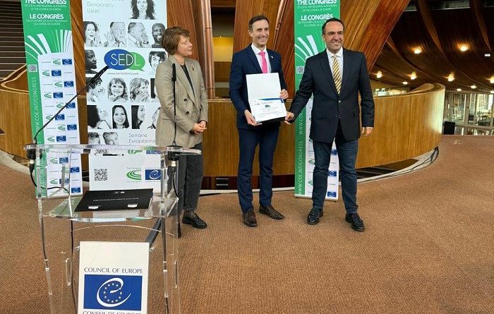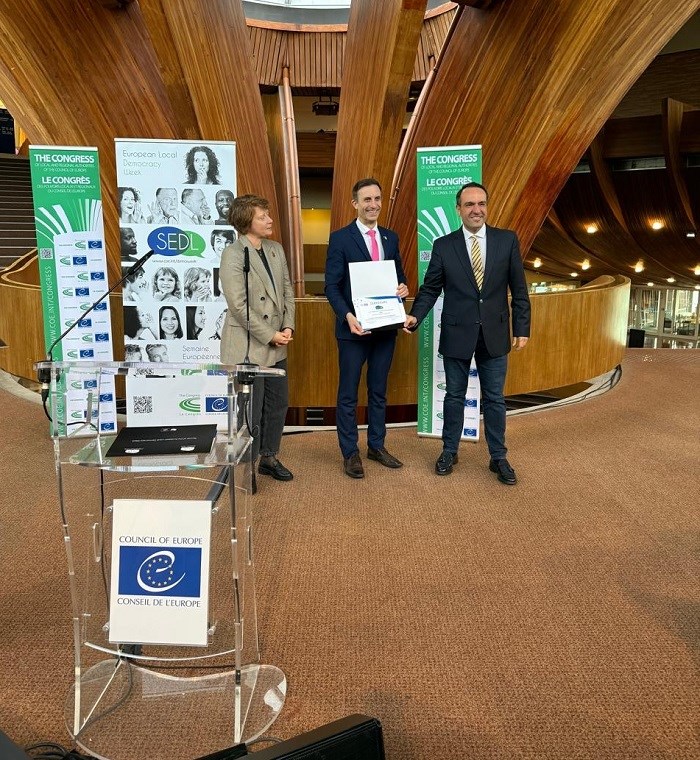 Το βραβείο παρέλαβε για λογαριασμό του Δήμου στην τελετή, ο εκπρόσωπος της ΚΕΔΕ και αντιπρόεδρος στο Κογκρέσο Τοπικών Αρχών Κωνσταντίνος Κουκάς από τον γενικό γραμματέα του Διεθνούς Οργανισμού Mathieu Mori.