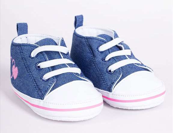 Παπουτσάκια αγκαλιάς τζιν με ελαστικά κορδόνια και σχέδιο καρδιές μπλε