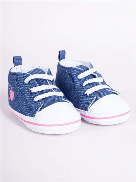 Παπουτσάκια αγκαλιάς τζιν με ελαστικά κορδόνια και σχέδιο καρδιές μπλε