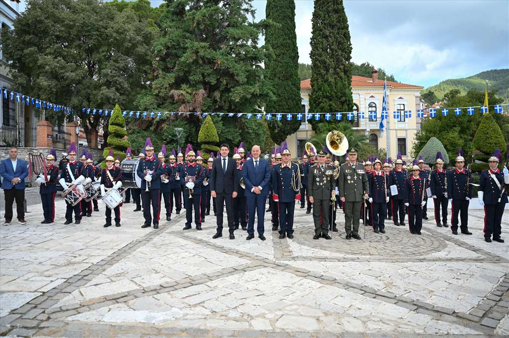 Ακολούθως, ο Υπουργός Εθνικής Άμυνας παρακολούθησε τη στρατιωτική και μαθητική παρέλαση, στην οποία συμμετείχαν επίσης πολιτιστικές και εθελοντικές οργανώσεις, καθώς και σύλλογοι.