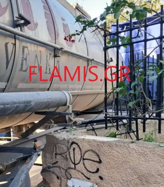 Σκηνές τρόμου στην Πάτρα. Οι κάτοικοι ενός σπιτιού στην οδό Αθηνών και Λευκωσίας είδαν ένα μεγάλο βυτιοφόρο να «καρφώνεται» στην μάντρα.