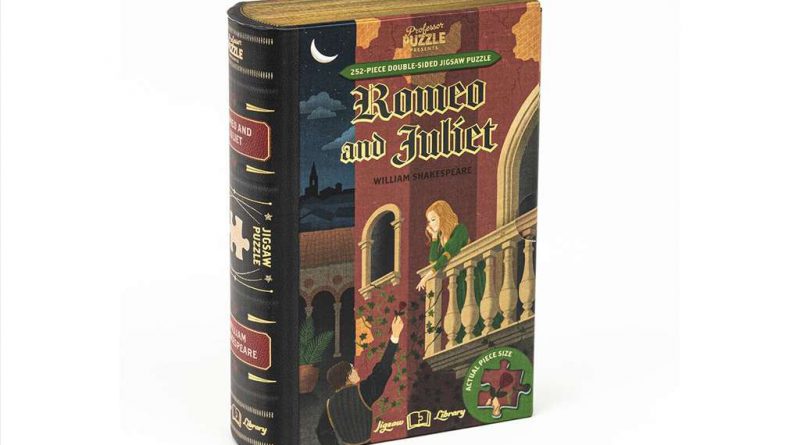 Αυτό το παζλ διπλής όψεως 252 κομματιών απεικονίζει τη ρομαντική σκηνή του μπαλκονιού στη μία πλευρά και ένα απόσπασμα από το βιβλίο στην άλλη, αποτελώντας ιδανικό δώρο τόσο για τους λάτρεις του βιβλίου όσο και για τους λάτρεις των παζλ.