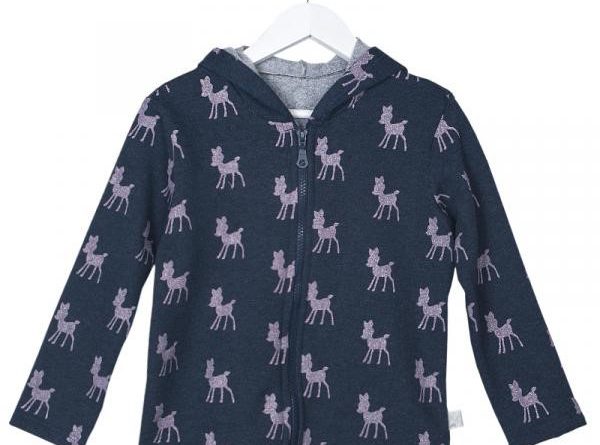 Παιδική μακρυμάνικη ζακέτα με κουκούλα και μοτίβο Ελαφάκια με ασημόσκονη. Κλείσιμο με φερμουάρ στο μπροστινό μέρος. Ιδιαίτερη, απαλή ποιότητα.