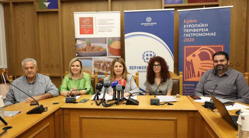 Στη διάρκεια συνέντευξης Τύπου που πραγματοποιήθηκε σήμερα στην Περιφέρεια Κρήτης, ανακοινώθηκε η δημιουργία Επιχειρησιακού Σχεδίου για τον Κρητικό Διατροφικό Πολιτισμό, μια στρατηγική πρωτοβουλία της Περιφέρειας με αφορμή την ανακήρυξη της Κρήτης ως Ευρωπαϊκή Περιφέρεια Γαστρονομίας για το 2026.