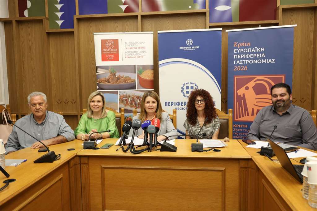 Στη διάρκεια συνέντευξης Τύπου που πραγματοποιήθηκε σήμερα στην Περιφέρεια Κρήτης, ανακοινώθηκε η δημιουργία Επιχειρησιακού Σχεδίου για τον Κρητικό Διατροφικό Πολιτισμό, μια στρατηγική πρωτοβουλία της Περιφέρειας με αφορμή την ανακήρυξη της Κρήτης ως Ευρωπαϊκή Περιφέρεια Γαστρονομίας για το 2026.