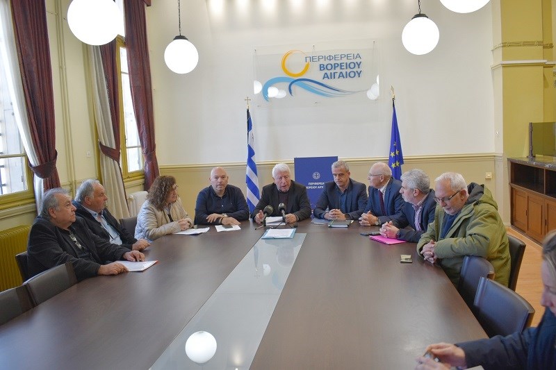 Ο Περιφερειάρχης Βορείου Αιγαίου Κωνσταντίνος Μουτζούρης παραχώρησε σήμερα Συνέντευξη Τύπου παρουσία του Δημάρχου Μυτιλήνης Παναγιώτη Χριστόφα, των Αντιπεριφερειαρχών Κώστα Αρώνη, Ευστράτιου Κυρατζή, Χρυσόστομου Χατζηκυριαζή, του Εκτελεστικού Γραμματέα Αριστόβουλου Ελευθερίου, του Προέδρου της ΔΕΥΑΛ Παναγιώτη Βάλεση, του Προέδρου της Αναπτυξιακής Εταιρίας της Περιφέρειας Βασίλη Τερζή, της Προϊσταμένης της Διεύθυνσης Τεχνικών Έργων της Περιφέρειας Μαρίας Τσακίρη και του Προέδρου Νέων Κυδωνιών Απόστολου Τριανταφύλλου.