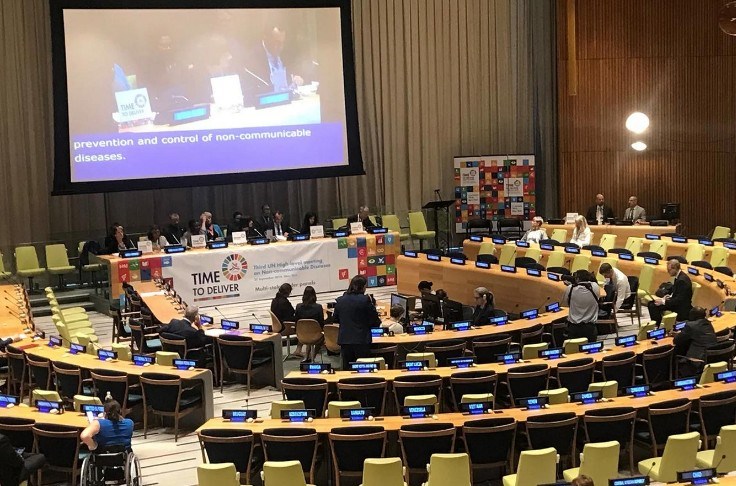 Στην τέταρτη συνάντηση υψηλού επιπέδου της Γενικής Συνέλευσης των Ηνωμένων Εθνών στις 25 Σεπτεμβρίου στη Νέα Υόρκη, ο Παγκόσμιος Οργανισμός Υγείας παρουσίασε το προσχέδιο Πολιτικής Διακήρυξης για την Πρόληψη και τον Έλεγχο των Μη Μεταδοτικών Ασθενειών. Παρόλο που οι Ηνωμένες Πολιτείες και ορισμένες άλλες χώρες αρνήθηκαν να εγκρίνουν αυτό το έγγραφο, εμποδίζοντας την ομόφωνη ψηφοφορία, αναμένεται να συνεχιστεί η διαδικασία επικύρωσης εντός των Ηνωμένων Εθνών. Περιγραφόμενη από τον ΠΟΥ ως «ένα νέο όραμα για την πρόληψη και τον έλεγχο των μη μεταδοτικών ασθενειών και την προαγωγή της ψυχικής υγείας και ευεξίας έως το 2030 και μετά», αυτή η Πολιτική Διακήρυξη στόχευε στην περαιτέρω ρύθμιση της εμπορίας και της προώθησης των αλκοολούχων ποτών, μεταξύ άλλων στόχων. Η έκδοση που επικυρώθηκε στις αρχές Σεπτεμβρίου ενσωματώνει την έννοια της «καταχρηστικής κατανάλωσης», ενώ από το 2023, ο ΠΟΥ υποστηρίζει μια πολιτική που βασίζεται στην ιδέα ότι «κανένα επίπεδο κατανάλωσης δεν είναι ασφαλές για την υγεία μας».
