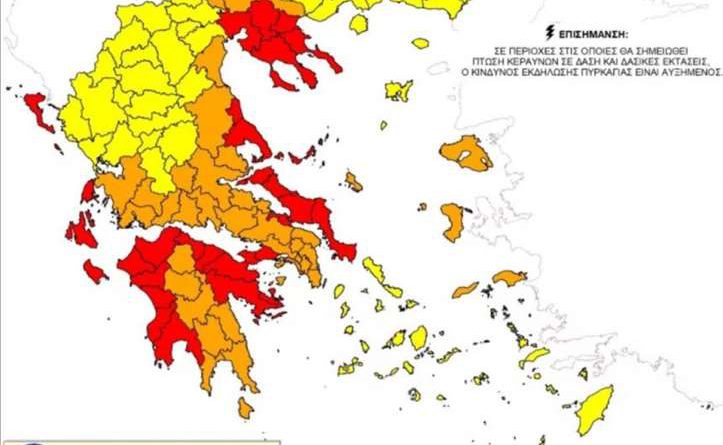 Ακραίος κίνδυνος πυρκαγιάς – Κατάσταση Συναγερμού (κατηγορία κινδύνου 5) για τις εξής περιοχές: