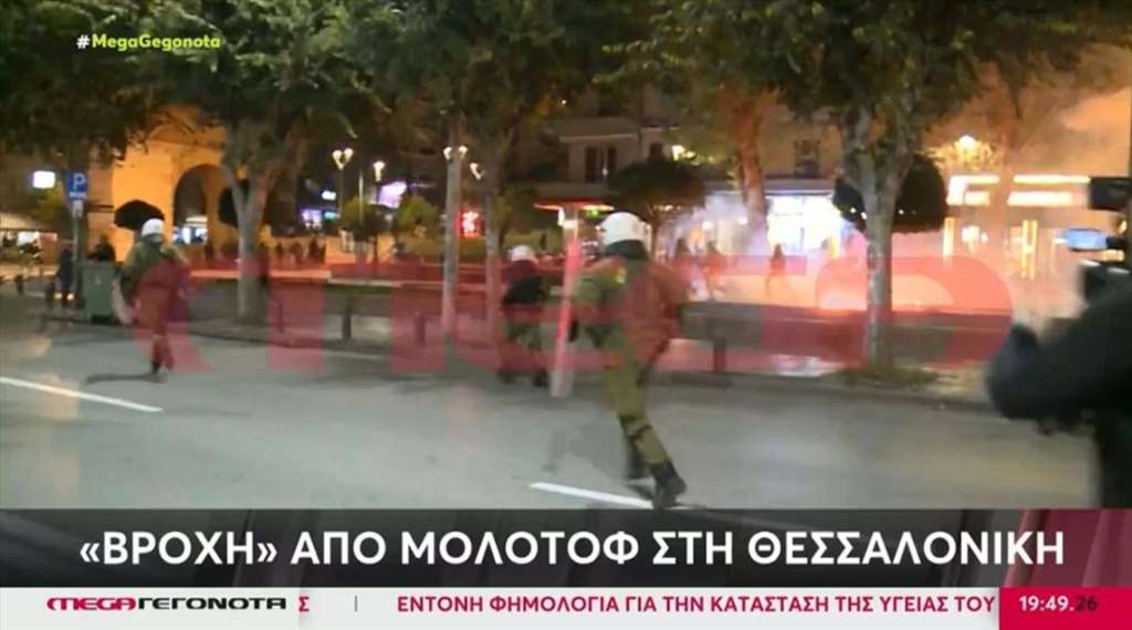Ωστόσο, πριν από λίγη ώρα ξεκίνησε ανθρωποκυνηγητό αστυνομίας και αντιεξουσιαστών που πέταξαν βόμβες μολότοφ στη Θεσσαλονίκη. Παρόμοια είναι η εικόνα και από το κέντρο της Πάτρας, που αντιεξουσιαστές φορώντας κράνη φωνάζουν συνθήματα κατά της αστυνομίας.