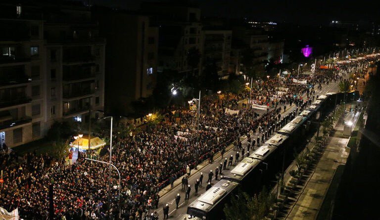 Φοιτητικοί σύλλογοι με σύνθημα «οι εξεγέρσεις δεν μπαίνουν στα μουσεία, εμπρός για της γενιάς μας τα Πολυτεχνεία», φορείς, ο ΣΥΡΙΖΑ, το ΠΑΣΟΚ- ΚΙΝΑΛ, το ΜέΡΑ 25, κόμματα κι οργανώσεις της εξωκοινοβουλευτικής αριστεράς, εργατικά σωματεία και συλλογικότητες του αντιεξουσιαστικού χώρου συγκεντρώθηκαν στην Πλατεία Κλαυθμώνος και κατευθύνθηκαν προς την αμερικανική πρεσβεία.