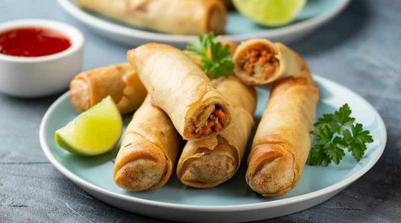 Τοποθετήστε τα spring rolls σε ένα ταψί με την πλευρά της ραφής προς τα κάτω, αλείψτε τα με λίγο ακόμα αυγό και πασπαλίστε με σουσάμι, αν θέλετε.