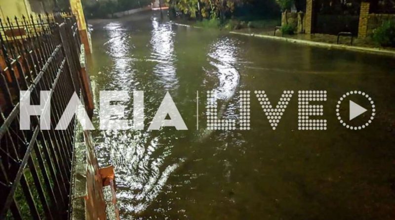 Ποτάμια οι δρόμοι μετά τις βροχές στην Ηλεία – Προβλήματα και στην ηλεκτροδότηση