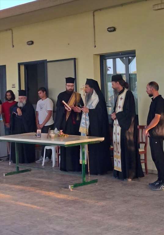 Την ακολουθία του Αγιασμού τέλεσε ο Σεβασμιώτατος Αρχιεπίσκοπος Κατάρων κ.κ. Μακάριος, παρουσία του Σεβασμιωτάτου Ποιμενάρχου μας Αρχιεπισκόπου Κρήτης κ.κ. Ευγενίου, ο οποίος μίλησε στα παιδιά με λόγια συμβουλευτικά.