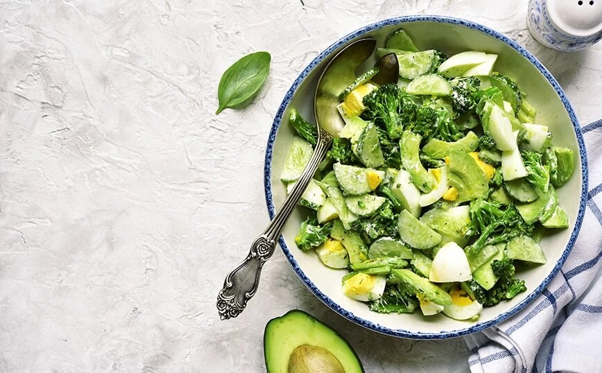 Ανακατέψτε απαλά με τα χέρια σας, χωρίζοντας απαλά τις φέτες αβοκάντο.