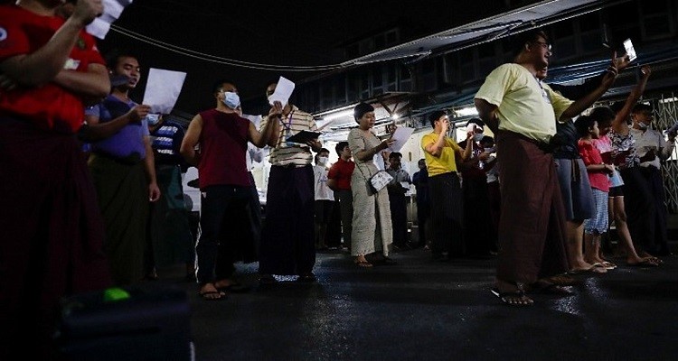 Εκατοντάδες πολίτες της Μιανμάρ, περίπου χίλιοι σύμφωνα με δημοσιογράφους του Γαλλικού Πρακτορείου, διαδηλώνουν σήμερα στη Γιανγκόν, τη μεγαλύτερη πόλη της χώρας, κατά του πραξικοπήματος που ανέτρεψε στην αρχή της εβδομάδας την Αούνγκ Σαν Σου Κι.