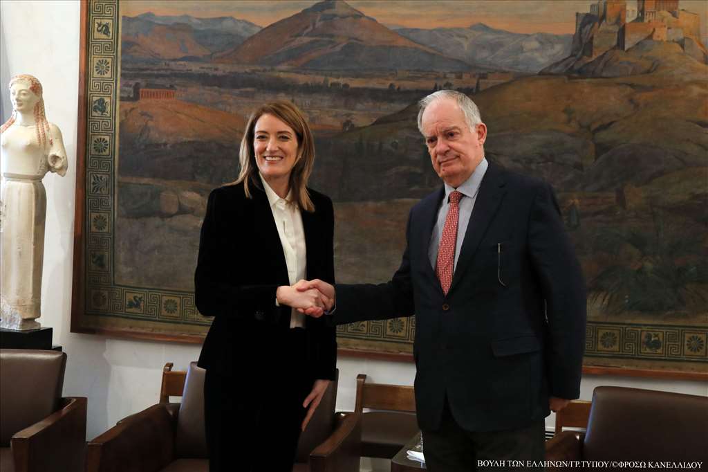 To μήνυμα της επανεκκίνησης και αναγέννησης της Ευρώπης μέσω των ευρωεκλογών της 9ης Ιουνίου εξέπεμψαν με κοινές δηλώσεις του σε σημερινή τους συνάντηση στη Βουλή, ο Πρόεδρος του Ελληνικού Κοινοβουλίου, κ. Κωνσταντίνος Τασούλας και η Πρόεδρος του Ευρωπαϊκού Κοινοβουλίου, κ. Ρομπέρτα Μέτσολα.