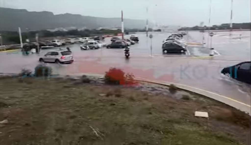 Σοβαρά προβλήματα όμως προκάλεσε η βροχή και στο αεροδρόμιο “Δασκαλογιάννης” των Χανίων, όπου ο περιβάλλων χώρος μετατράπηκε σε “λίμνη”.
