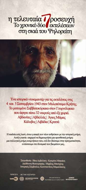 Προβολή ιστορικού ντοκιμαντέρ με τίτλο «Η τελευταία προσευχή. Το χρονικό δύο εκτελέσεων στη σκιά του Ψηλορείτη»