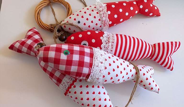 4 ψαράκια γεμισμένα με με αντιαλεργικό hollofiber. και ραμμένα με βαμβακερό πουά ύφασμα