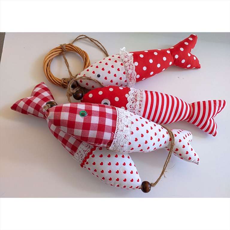 4 ψαράκια γεμισμένα με με αντιαλεργικό hollofiber. και ραμμένα με βαμβακερό πουά ύφασμα