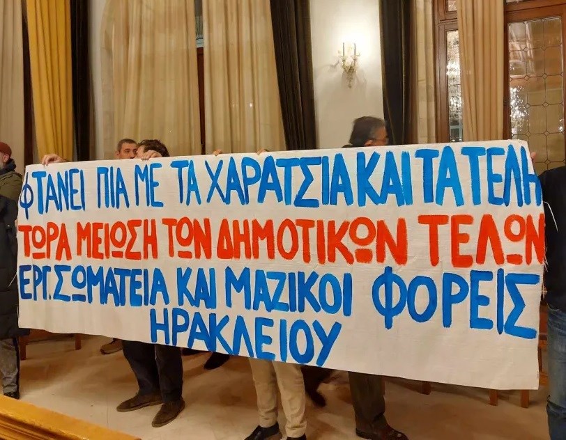 Με αφορμή την κατά πλειοψηφία απόφαση του Δημοτικού Συμβουλίου Ηρακλείου για αύξηση των δημοτικών τελών, η παράταξη της Λαϊκής Συσπείρωσης σε ανακοίνωσή της αναφέρει: