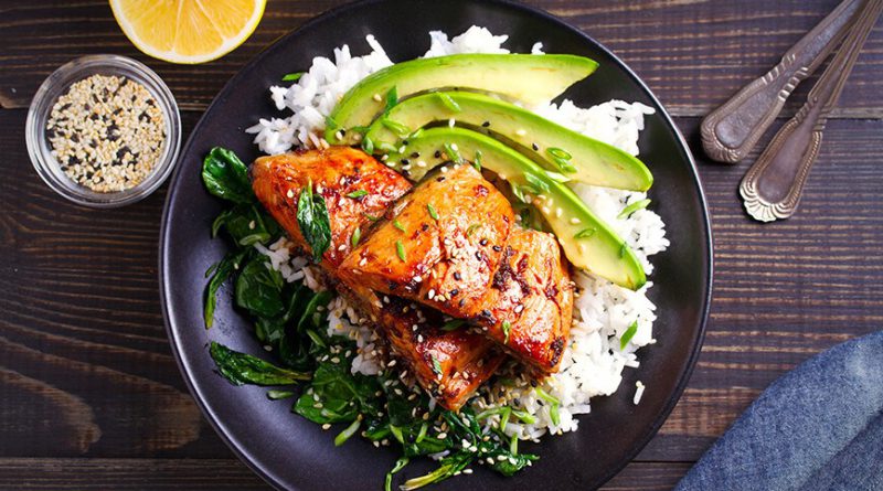 Ψητός σολομός με σάλτσα από τζίντζερ, σόγια και μουστάρδα