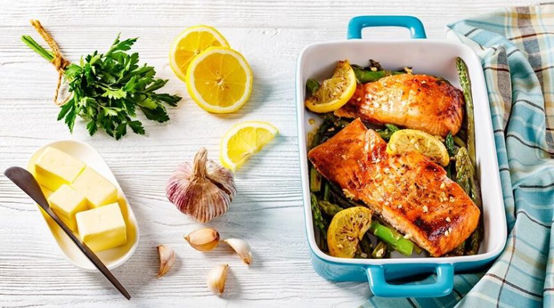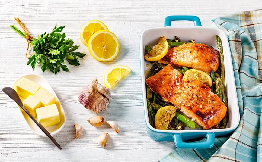 Ψητός σολομός με σπαράγγια σε σάλτσα βουτύρου