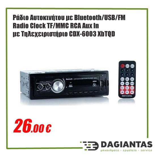 Ράδιο Αυτοκινήτου με Bluetooth/USB/FM Radio Clock TF/MMC RCA Aux In με Τηλεχειριστήριο CDX-6003 XbTQD