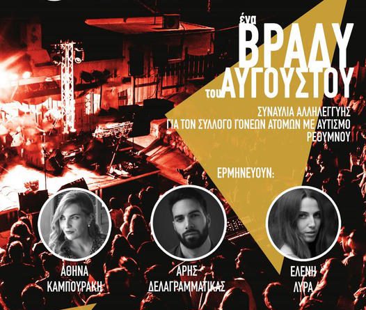 «Ένα βράδυ του Αυγούστου», ας είμαστε παρόντες στη μουσική εκδήλωση υποστήριξης των εργαστηρίων επαγγελματικής απασχόλησης του χώρου κοινωνικό στέκι ΑΜΕΑ Ρεθύμνου.