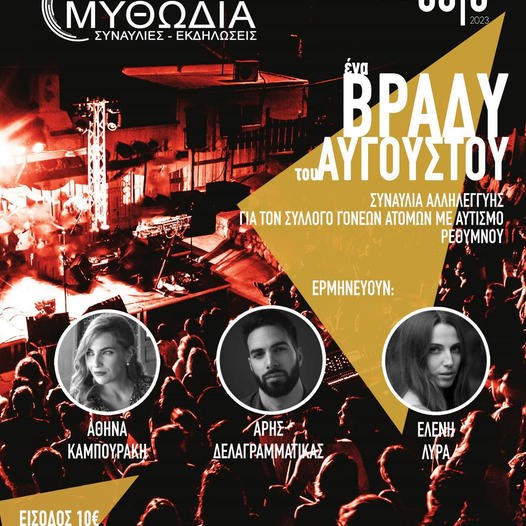 «ΕΝΑ ΒΡΑΔΥ ΤΟΥ ΑΥΓΟΥΣΤΟΥ» συναυλία για καλό σκοπό στο Θέατρο Μυθωδία