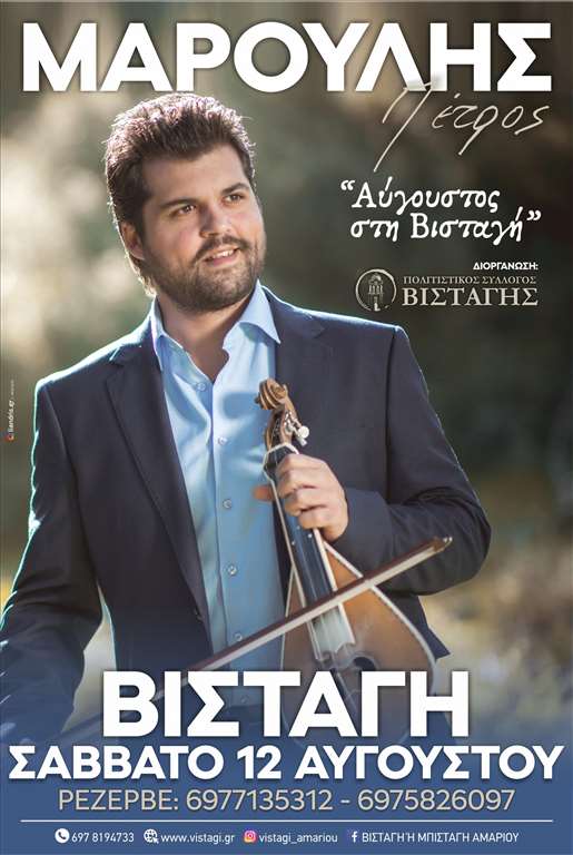 Ο Πολιτιστικός Σύλλογος Βισταγής διοργανώνει το Σάββατο 12 Αυγούστου χοροεσπερίδα που θα μας διασκεδάσει το συγκρότημα του Πέτρου Μαρούλη.
