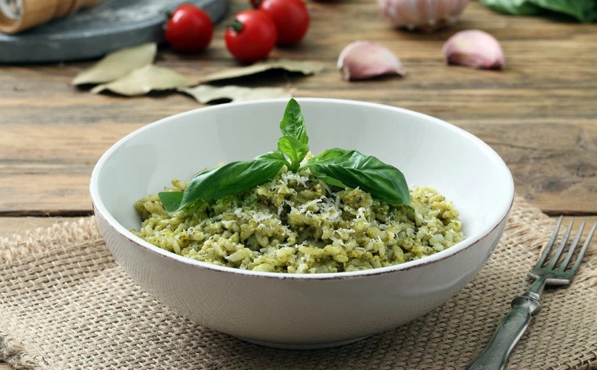 Ριζότο με πέστο και κατσικίσιο τυρί