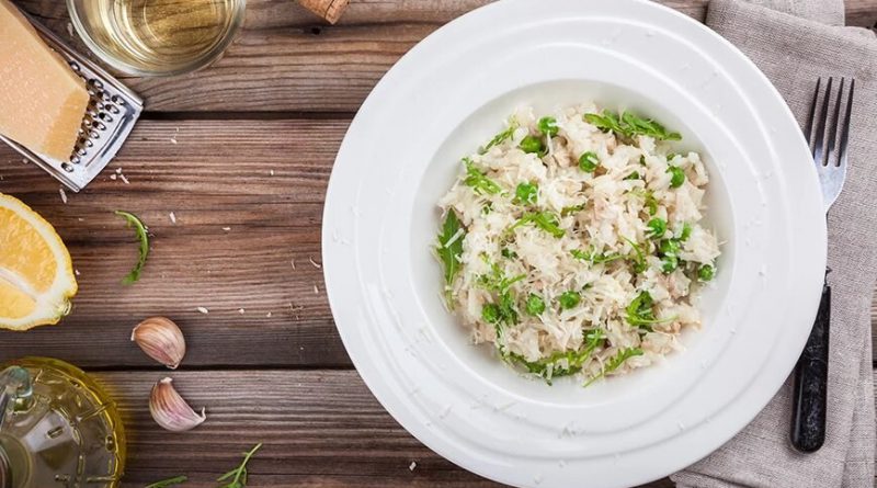 Ριζότο στο φούρνο με λεμόνι, αρακά και παρμεζάνα