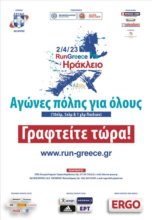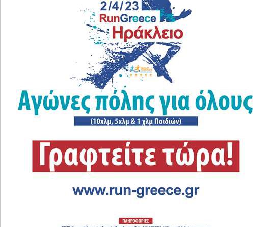 Για 10η χρονιά το Ηράκλειο και το ιστορικό του κέντρο, ετοιμάζονται να υποδεχτούν την Κυριακή 2 Απριλίου τους χιλιάδες δρομείς από όλη την Κρήτη, που προετοιμάζονται για να συμμετάσχουν και φέτος στην πολυπληθέστερη αθλητική διοργάνωση της Κρήτης τους αγώνες δρόμου «RUN GREECE Ηράκλειο»