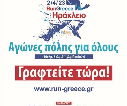 Οι διοργανωτές του «Run Greece Ηράκλειο» Σ.Ε.ΓΑ.Σ. – Ε.Α.Σ. Σ.Ε.Γ.Α.Σ. Κρήτης, Περιφέρεια Κρήτης και Δήμος Ηρακλείου, προσκαλούν τους πολίτες από όλη την Κρήτη να ολοκληρώσουν την εγγραφή τους μέχρι και το Σάββατο 1 Απριλίου και να εξασφαλίσουν τη συμμετοχή τους στο Run Greece την Κυριακή 2 Απριλίου.