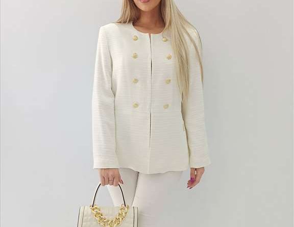 Σακάκι τύπου Chanel με χρυσά κουμπιά ελληνικής ραφής εκρού