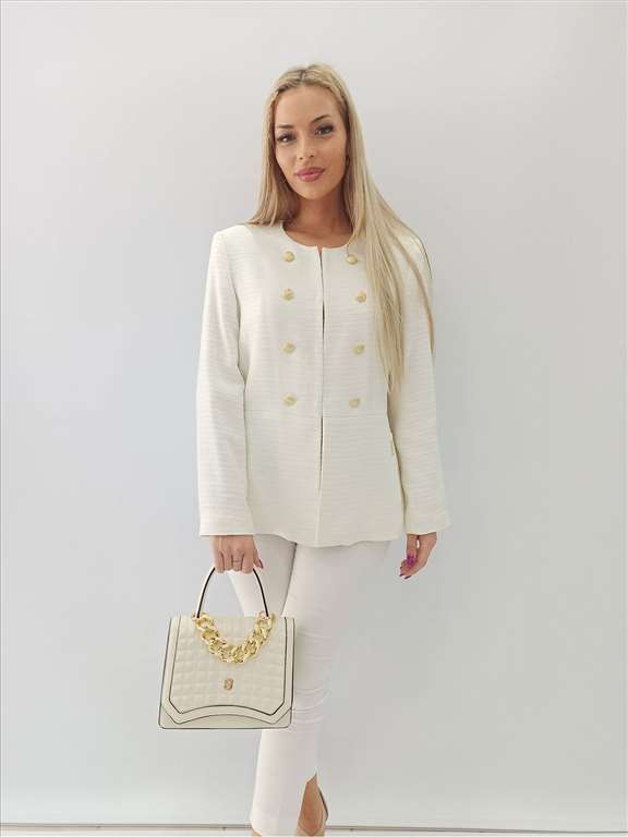 Σακάκι τύπου Chanel με χρυσά κουμπιά ελληνικής ραφής εκρού
