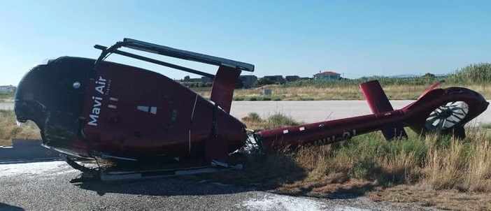 Το ελικόπτερο, φέρεται να χτύπησε στον διάδρομο κατά την προσγείωσή του με αποτέλεσμα να ανατραπεί.