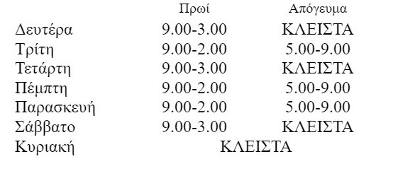 Σύμφωνα με τον Εμπορικό Σύλλογο Ηρακλείου το χειμερινό ωράριο των εμπορικών καταστημάτων στην πόλης θα έχει είναι αυτό που ακολουθεί παρακάτω: