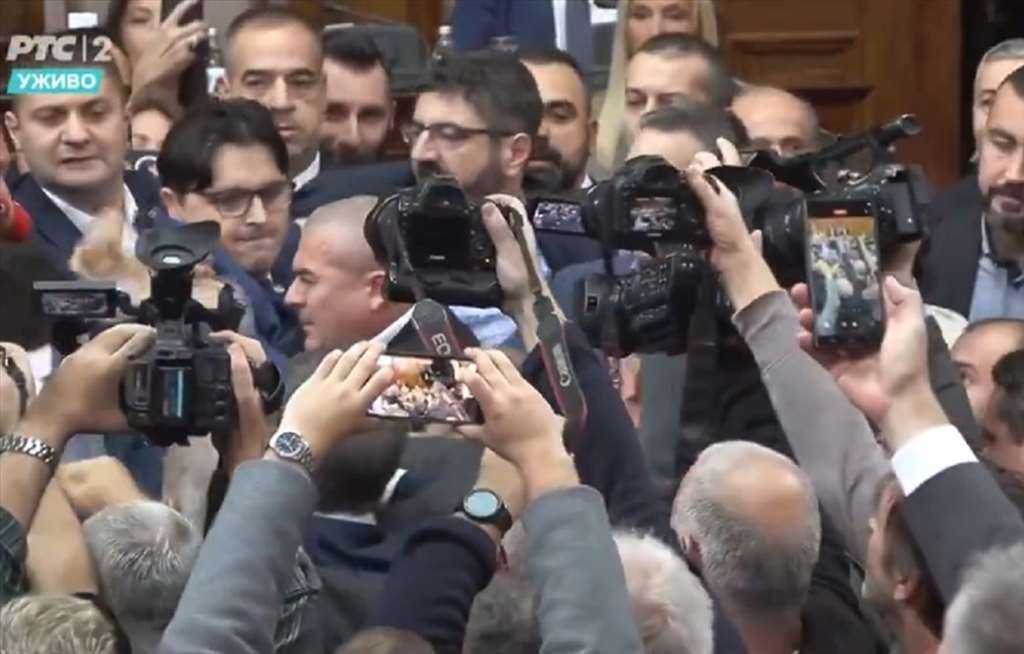 Σε ρινγκ μετατράπηκε η Bουλή της Σερβίας κατά την διάρκεια της συζήτησης για τον προϋπολογισμό του 2025. Οι βουλευτές της αντιπολίτευσης με την έναρξη της συνεδρίασης σήκωσαν πλακάτ όπου απεικονίζονται ματωμένα χέρια ενώ φώναζαν «Δολοφόνοι, δολοφόνοι».