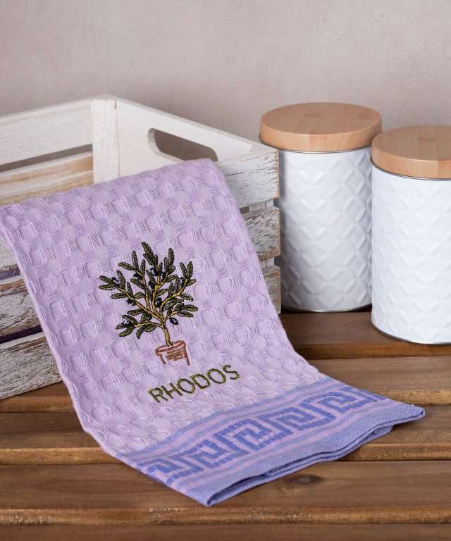 Σετ 12 τεμαχίων ποτηρόπανα γκοφρέ (50cm x 70cm) λιλά γλάστρα RHODES Silk Fashion