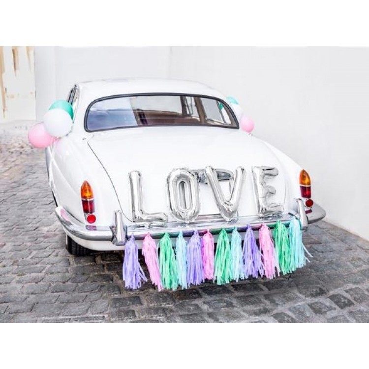 ασημί foil μπαλόνια (γράμματα: L, O, V, E, ύψος 35 cm)