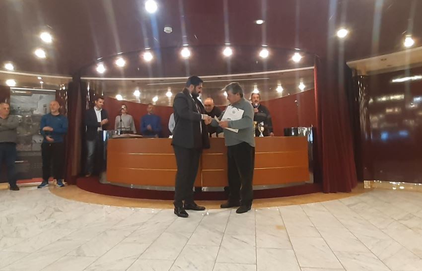 Την τελετή, που πραγματοποιήθηκε στις 5 Φεβρουαρίου στο κεντρικό σαλόνι του πλοίου Φαιστός των Μινωικών Γραμμών, τίμησαν με την παρουσία τους σημαντικές προσωπικότητες του τόπου, ενώ από την πλευρά του Ομίλου Καράτζη έδωσαν το “παρών” ο κ. Μιλτιάδης Καράτζης, γιος του Αντώνη Καράτζη, και ο κ. Εμμανουήλ Μιχαλάκης, Αναπληρωτής Γενικός Διευθυντής του Ομίλου.