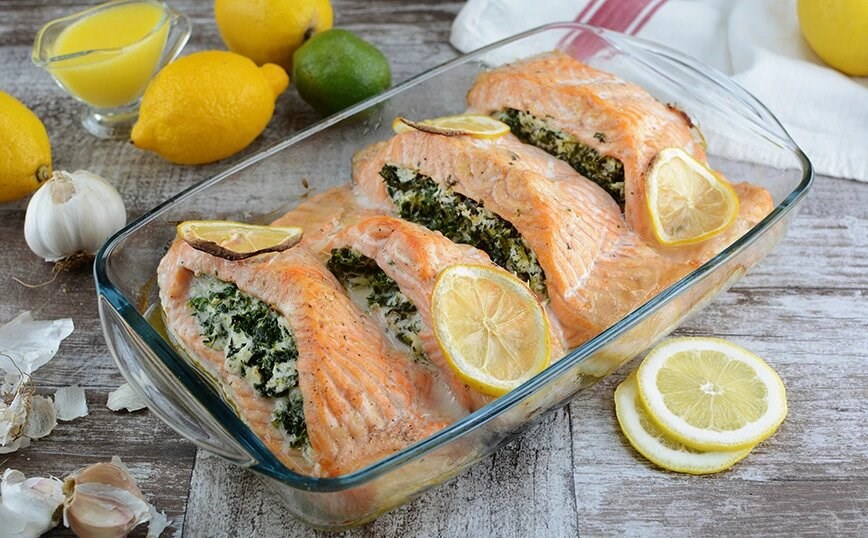 Σολομός γεμιστός με σπανάκι και τυρί κρέμα