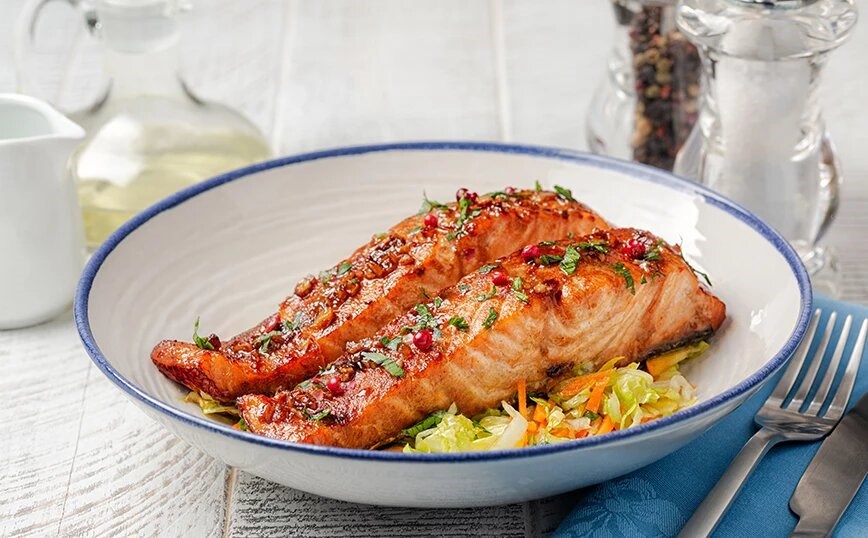Σολομός με μουστάρδα και σιρόπι σφενδάμου
