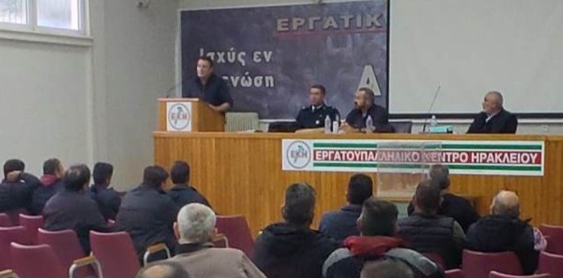 Στην κατάμεστη αίθουσα του Εργατικού Κέντρου Ηρακλείου, το Προεδρείο του Σωματείου, επεσήμανε ότι η επίλυση ζητημάτων όπως ο απαράδεκτος νόμος για τα κλαρκ, οι συλλογικές συμβάσεις εργασίας, οι παλαιοί χειριστές των δήμων, που δεν έχουν μπει στα βαρέα και ανθυγιεινά και συνταξιοδοτικά ζητήματα αποτελούν προτεραιότητα μας.